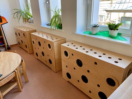 Heizkörperverkleidungen und Kletterwand-Matratzenschrank, öffentlicher Bauherr