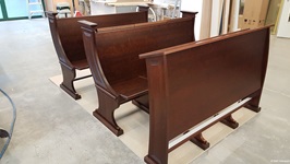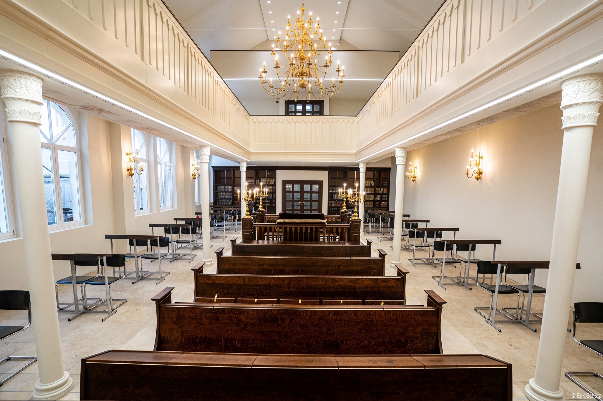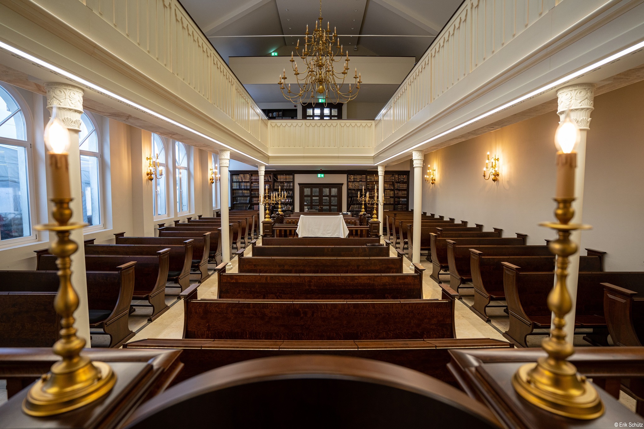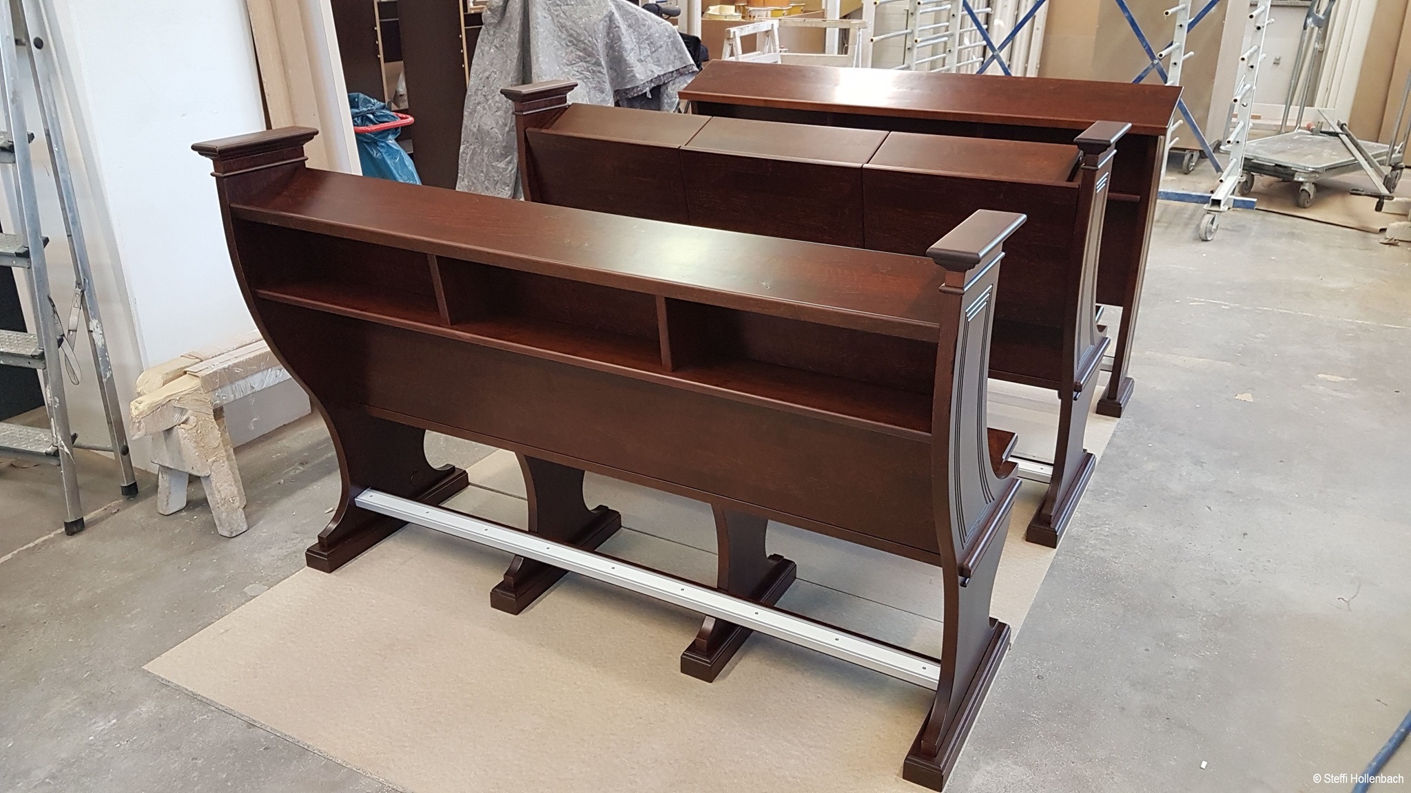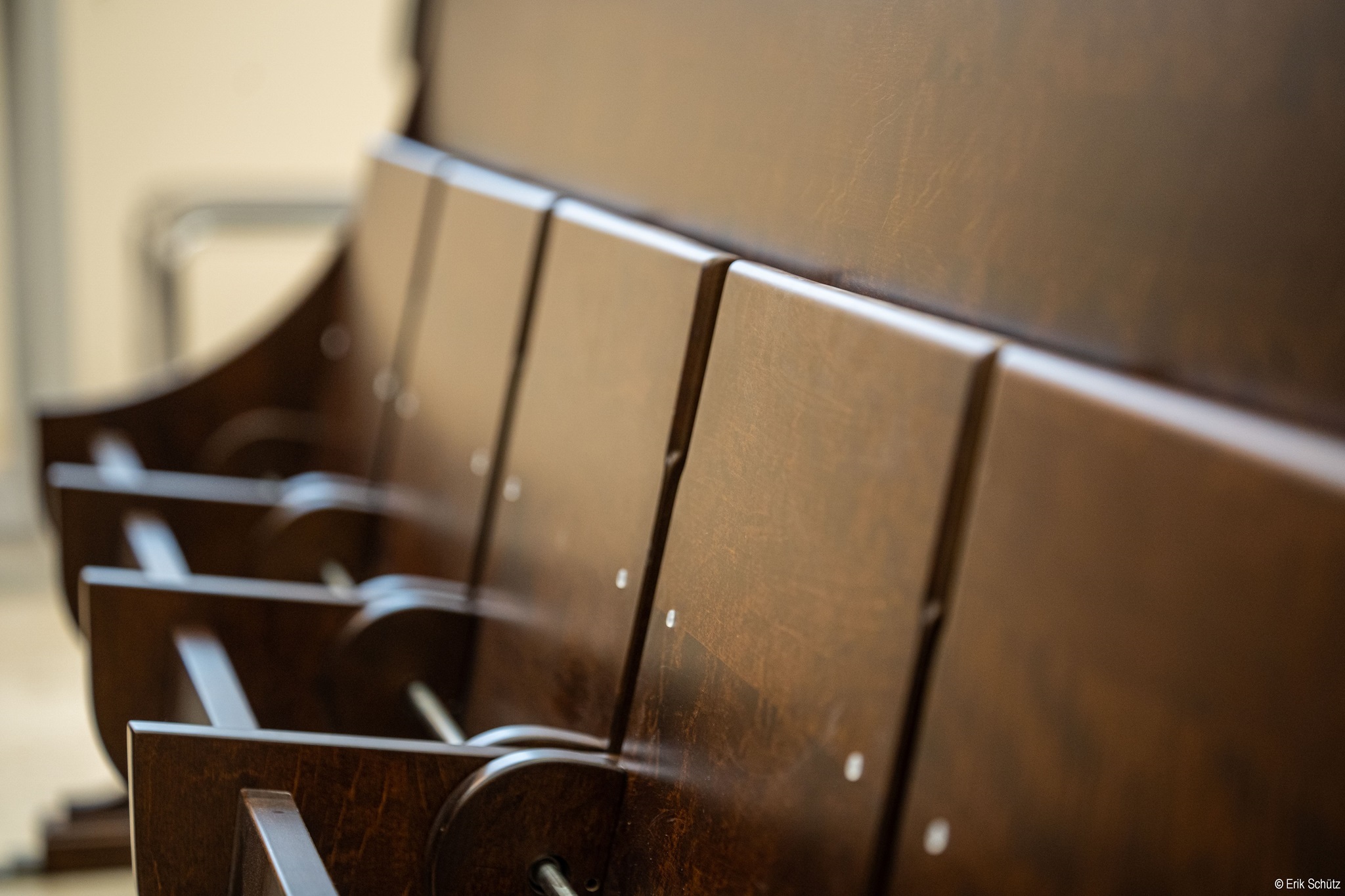 Insgesamt fertigten wir 81 funktionsverschiedene Sitzbänke und Pulttische für den Saal und die Empore der Beth Zion Synagoge mitten in Berlin.